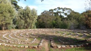 Waite Arboretum Labyrinth installed in 2010. In 2022 the labyrinth timber rounds were removed. The labyrinth will be rebuilt using more durable materials.