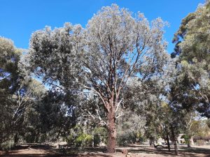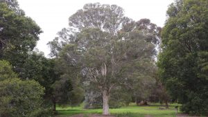Eucalyptus cladocalyx: Sugar Gums were planted by Peter Waite along Walter Young Drive from Fullarton Road to Urrbrae House in 1877 (Gardner, 2015, p.12). Most of the trees were removed in 1959 and replaced with Corymbia citriodora, Lemon Scented Gums. The remaining 13 Sugar Gums are on the northern and southern western sections of the Arboretum and are over 32 metres in height. The trees have been part of a University of Adelaide student's honours year studies into European honey bees in 2019.