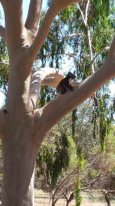 A visiting koala resting on a branch of a Corymbia citriodora Lemon Scented Gum in Walter Young Drive.