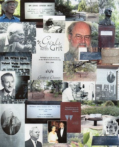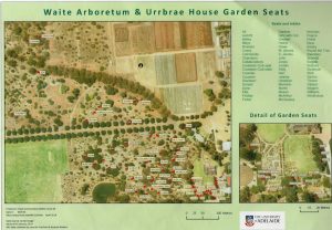 The stories of the seats is from a collection of fact sheets on the seats in the Waite Historic Precinct that includes: the Waite Arboretum, Urrbrae House Gardens, the Garden of Discovery and the Twentieth Century Rose Garden. The seats have been donated to the Precinct by Waite campus staff members, by recreational visitors to the Arboretum and by friends and supporters of the Arboretum. Many of the seats are to the memory of scientists, researchers, Waite campus staff and of recreational visitors to the Precinct. Each seat has a nameplate. In 2016 FWA member and volunteer Terry Langham developed 72 fact sheets from the collection of seats. The two or four page fact sheets contain images of the seats, the nameplates on the seats, the features of the nearby tree species and where possible a history of the person/s whose names appear on the seats's nameplates. For example: