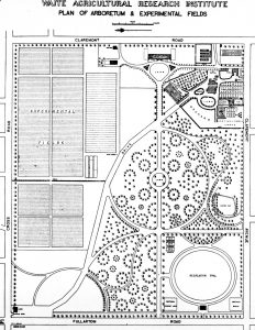 Left: Waite Agricultural Research Institute, Plan of Arboretum and Experiemental Fields, circa: 1933 or 1938?  Source: University of Adelaide Waite Campus