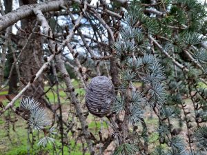 Right: #723 Cedrus atlantica 'Glauca' Mt Atlas Silver Cedar PINACEAE, cultivar planted in 1929.