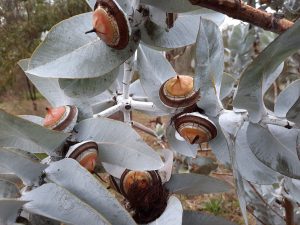 Left: #1924A Eucalyptus lansdowneana ssp. albopurpurea Boomsa Port Lincoln Mallee planted 1956.